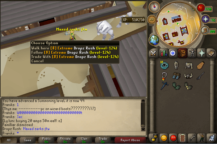 Tikko bija fight un es win ;cali kuram bija d2h, d skirt, zerk helm un rune plate, bet loot dabūju mystic gloves un bronze spear -.-